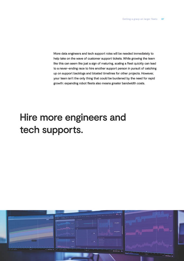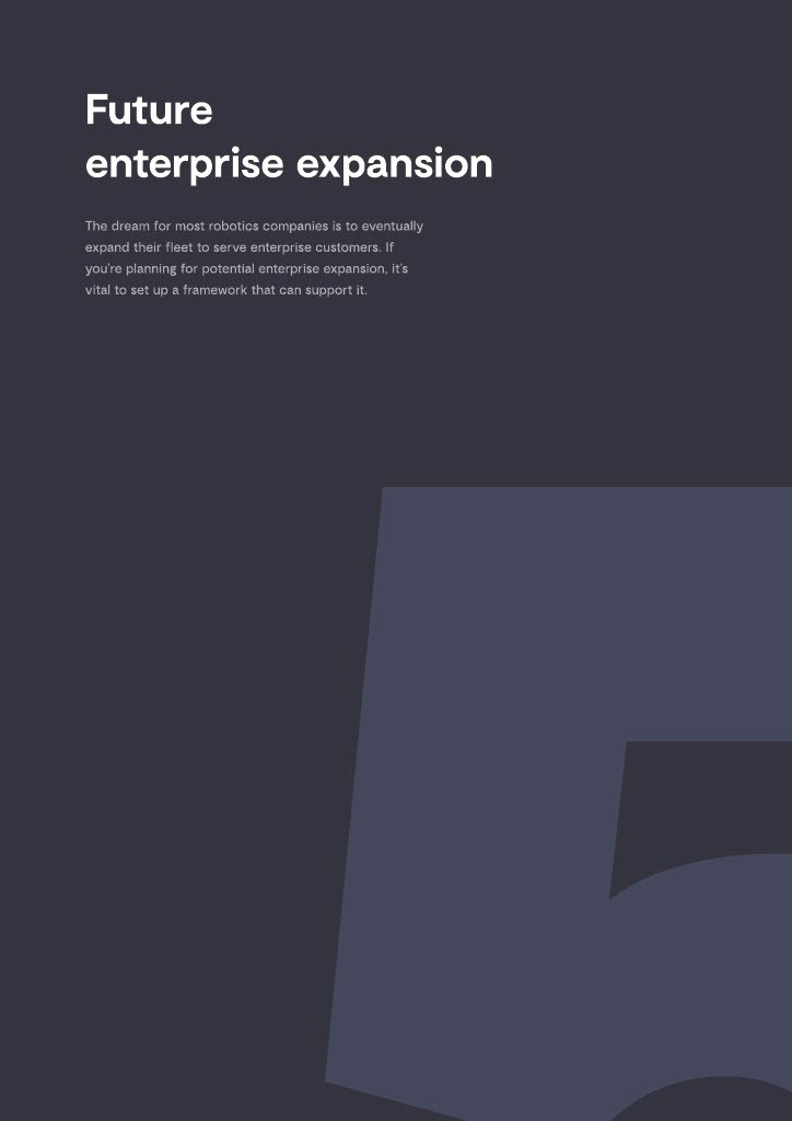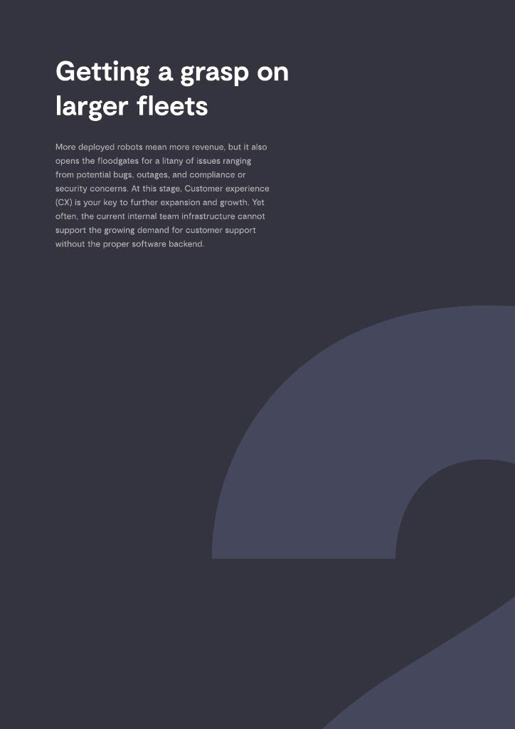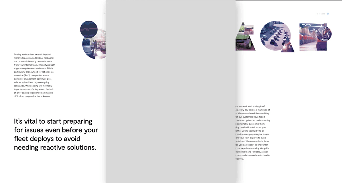 Scaling a robot fleet is complicated, and many teams struggle to understand the path forward. I designed a clear, visually structured whitepaper that breaks the journey into practical, actionable steps for growing robotics companies.